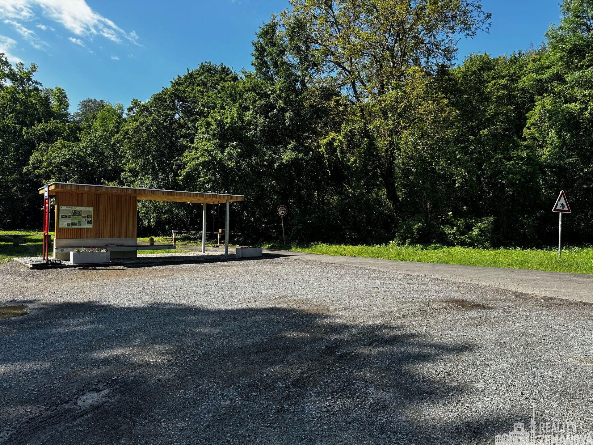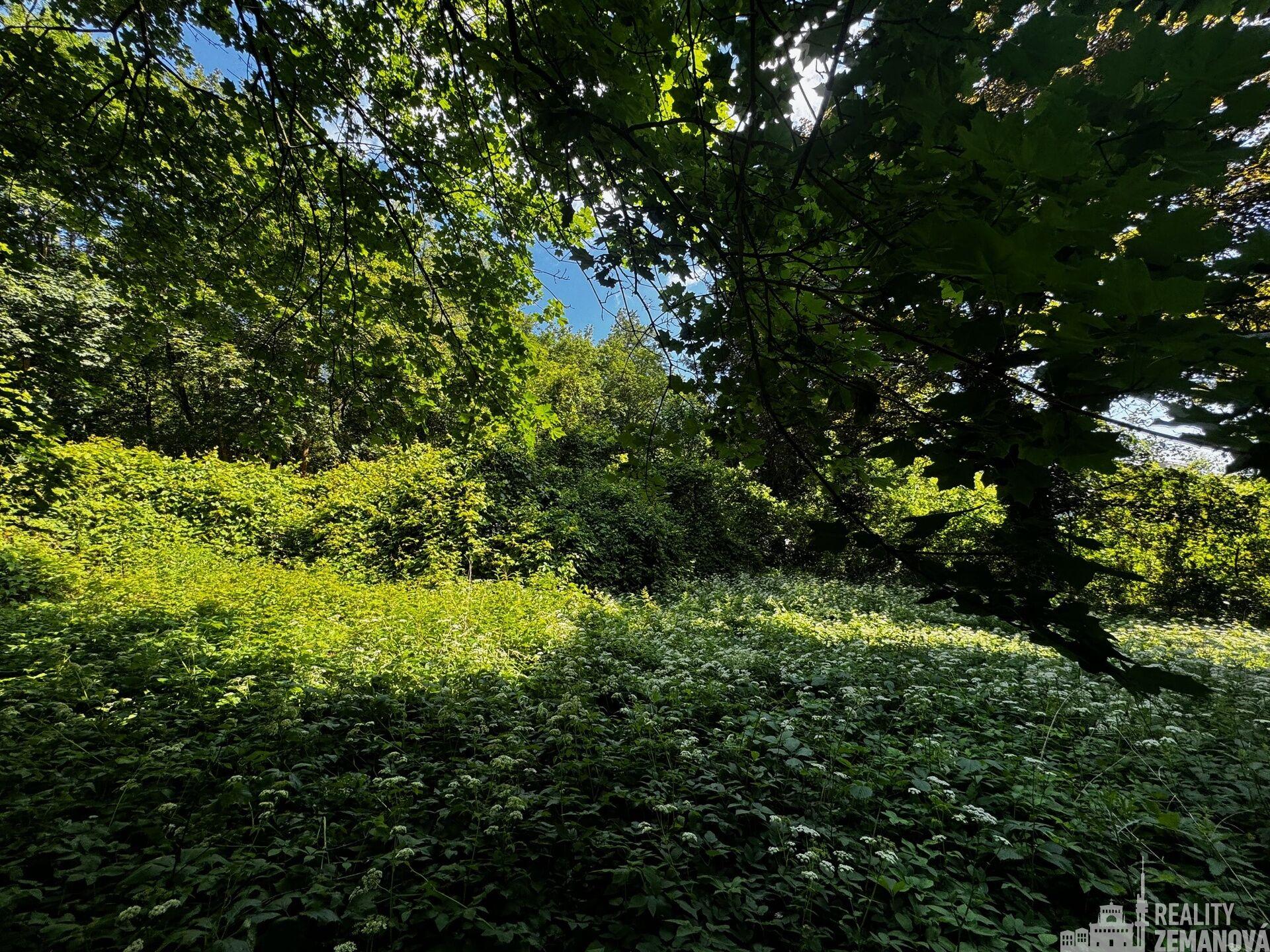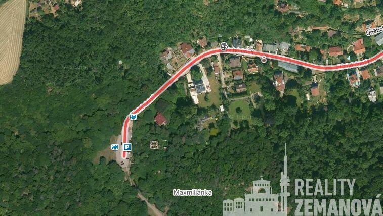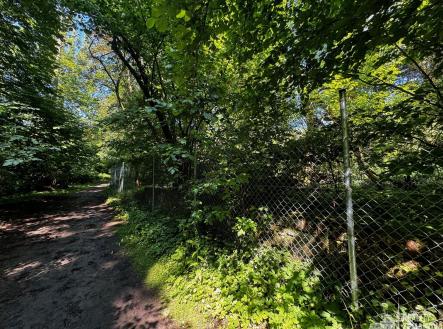 Prodej pozemků v romantické části Roztok, Tichém údolí. Přímo za prodávanými pozemky začíná cyklostezka. Za pozemky teče potůček.