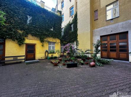Byt je plně vybavený a ve velmi dobrém stavu. Sestává z obývacího pokoje s kuchyňským koutem, ložnice, předsíně, komory, koupelny, samostatného WC a sklepa v 1. podzemním podlaží. Okna jsou orientována na jih s výhledem do krásného, zcela tichého a upraveného dvorního traktu se zelení – ideální pro klidné bydlení v centru města bez rušivého hluku z ulice.