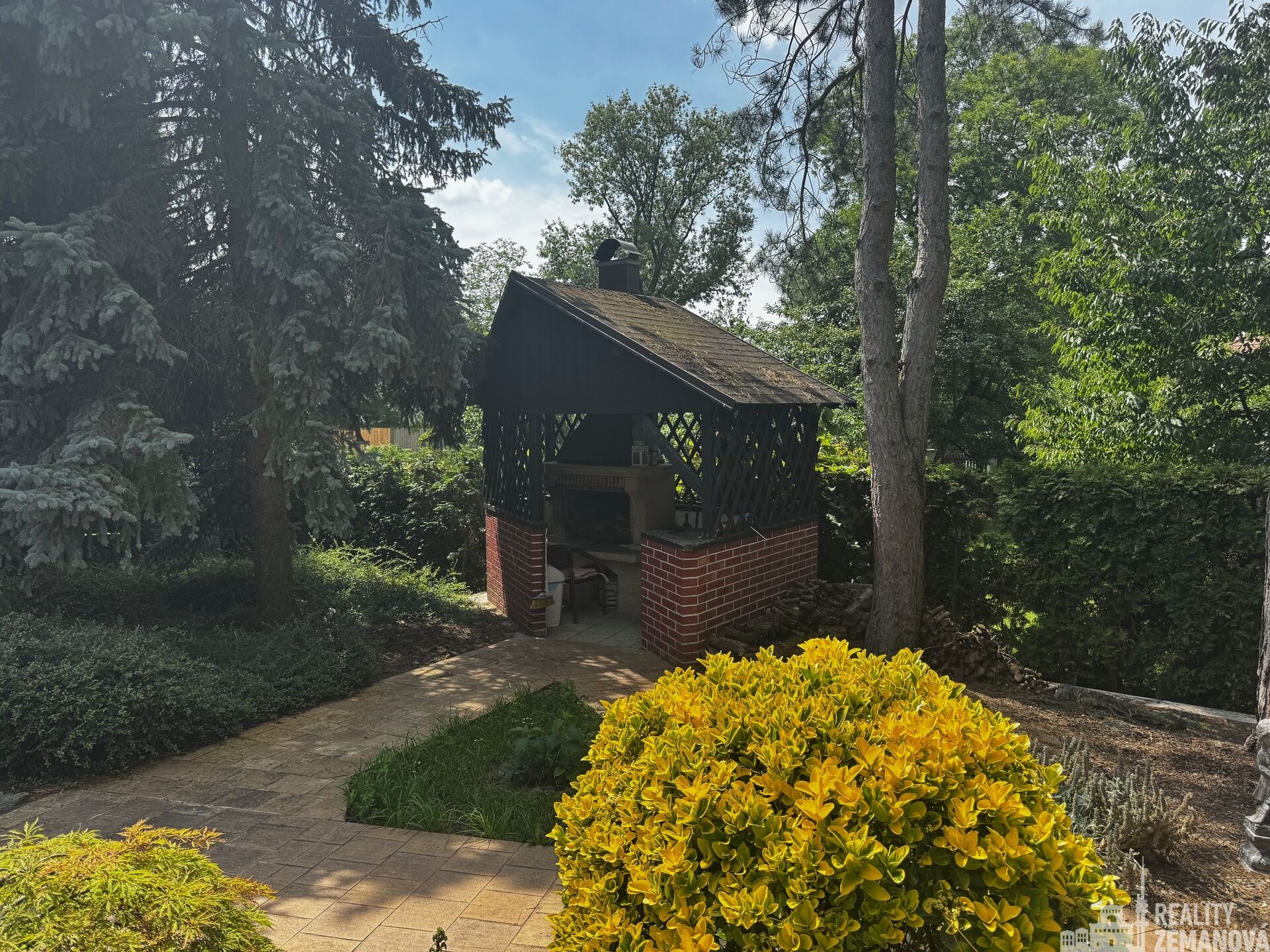 Na udržované a pečlivě upravené zahradě se nachází velkorysý bazén o ploše 40 m² s možností ohřevu vody, napojený na vodu ze studny. K dispozici je také plně vybavená letní kuchyně z roku 2012 (krb, dvouplotýnka, lednice), která nabízí ideální zázemí pro rodinné oslavy, letní grilování nebo klidný odpočinek.