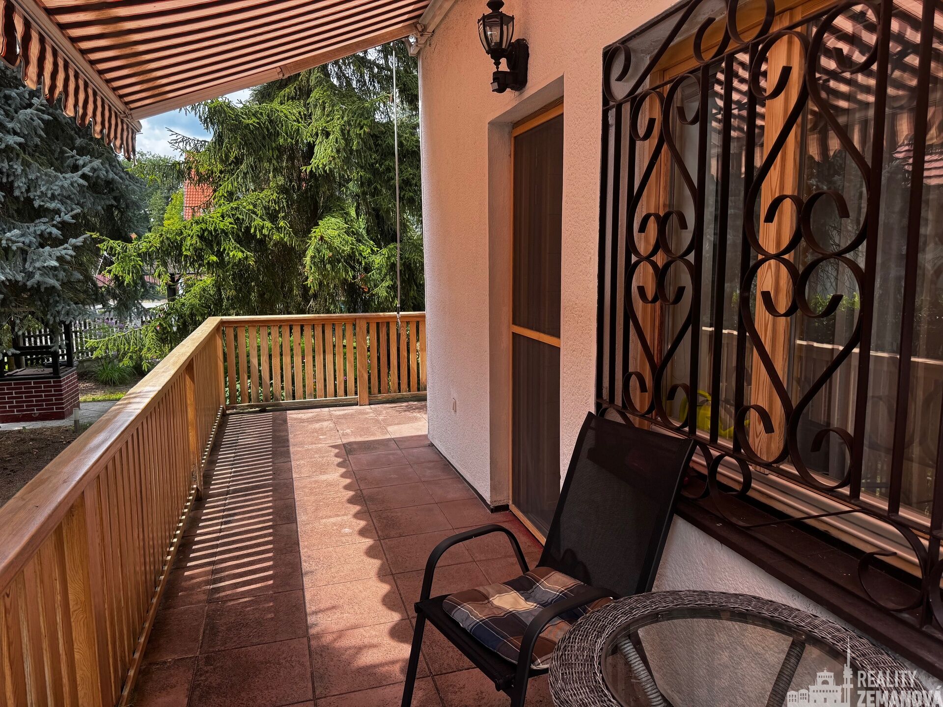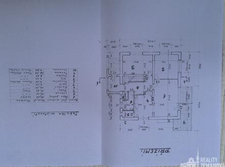 Přízemí: vstupní veranda, prostorná hala, samostatné WC, koupelna, dětský pokoj, ložnice, kuchyně, světlý obývací pokoj s přímým vstupem na terasu a na zahradu.