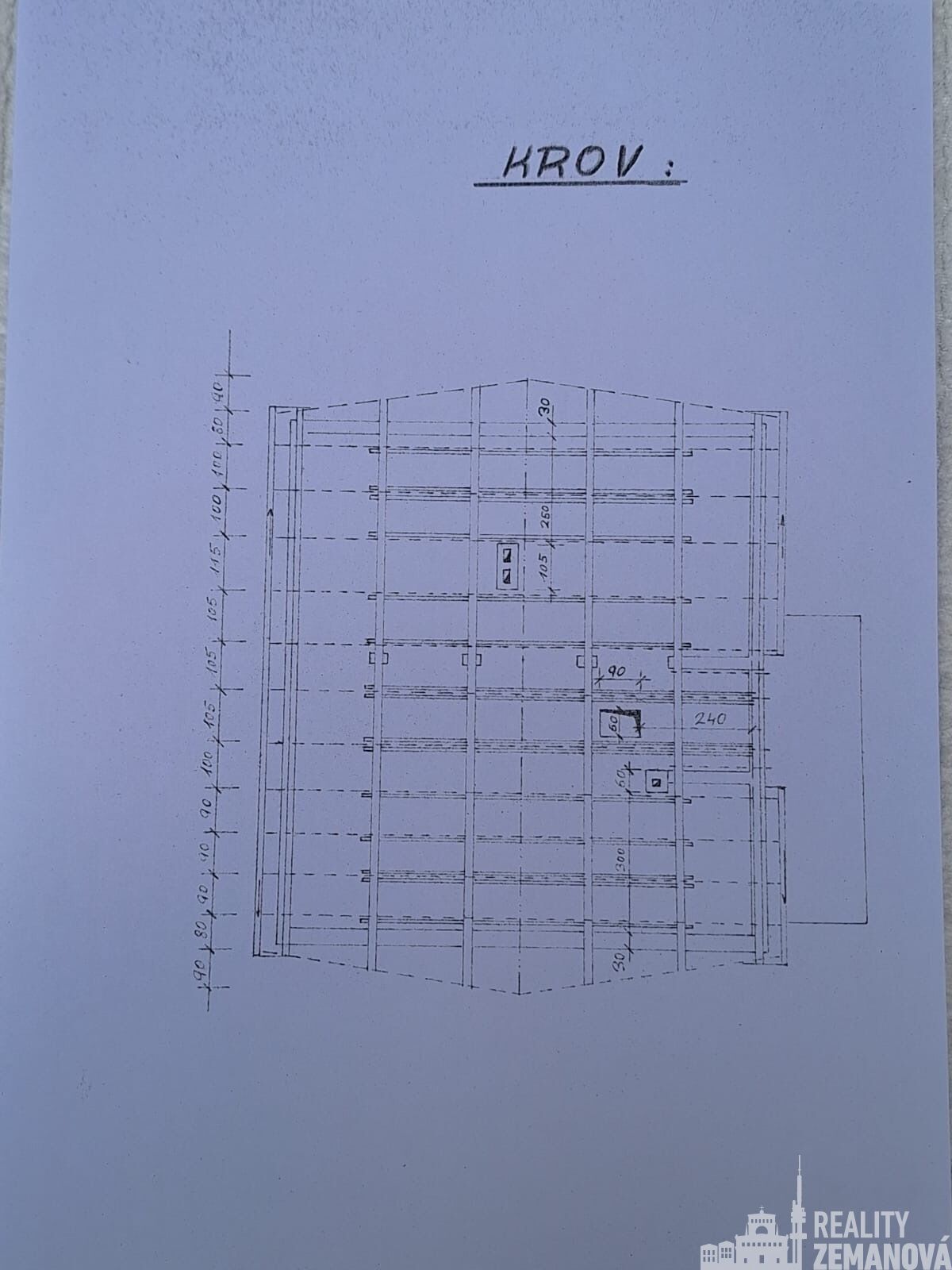 Podkroví: tři samostatné pokoje, koupelna, WC a centrální hala.