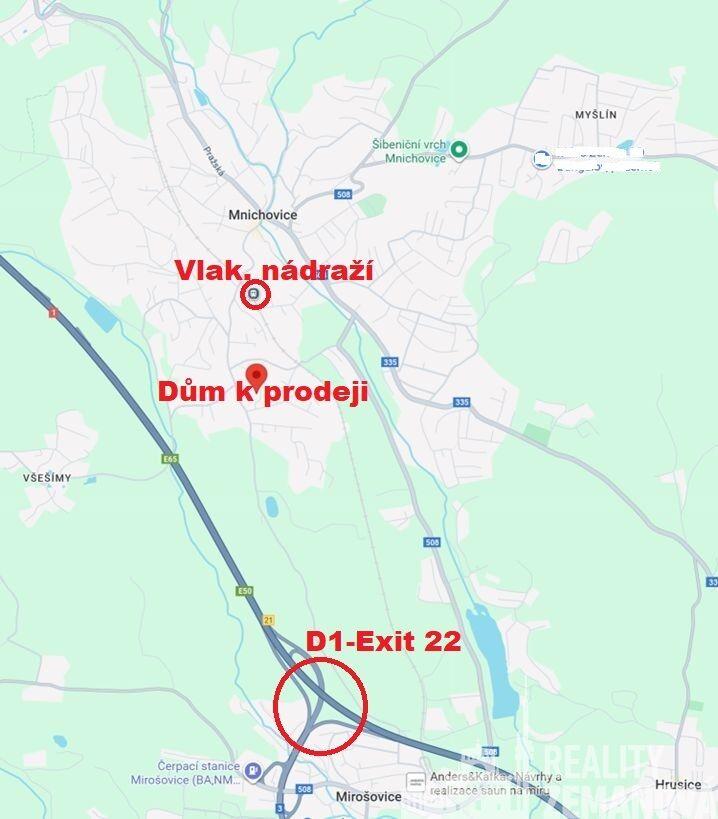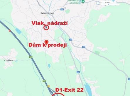 Mnichovice nabízejí výjimečnou dopravní dostupnost – vlakové nádraží je vzdáleno 10 minut chůze, s přímým spojením do Prahy (Hlavní nádraží za 28 minut, ve špičce 4 spoje za hodinu). Napojení na D1 (exit 22) je pouhé 4 km od domu. Díky poloze na svahu je i přes blízkost dálnice zaručen naprostý klid a ticho.