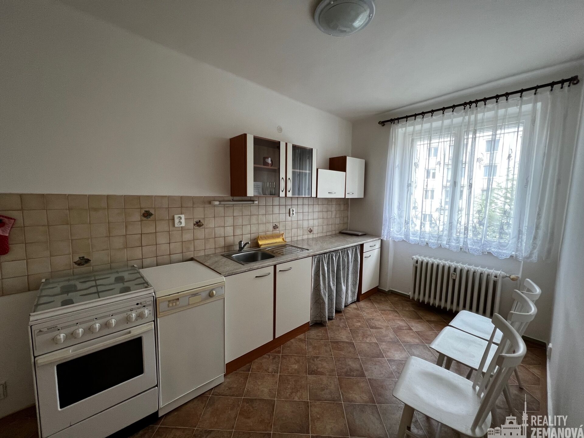 Vstupní předsíň s prostornou šatní skříní, samostatné WC, koupelna se sprchovým koutem, umyvadlem a pračkou. Kuchyně je vybavena větší kuchyňskou linkou, plynovým sporákem s elektrickou troubou, lednicí, myčkou a jídelní židlí. Osvětlení je zajištěno ve všech místnostech. Z pokoje je vstup na pěkný balkon s výhledem do zeleně.