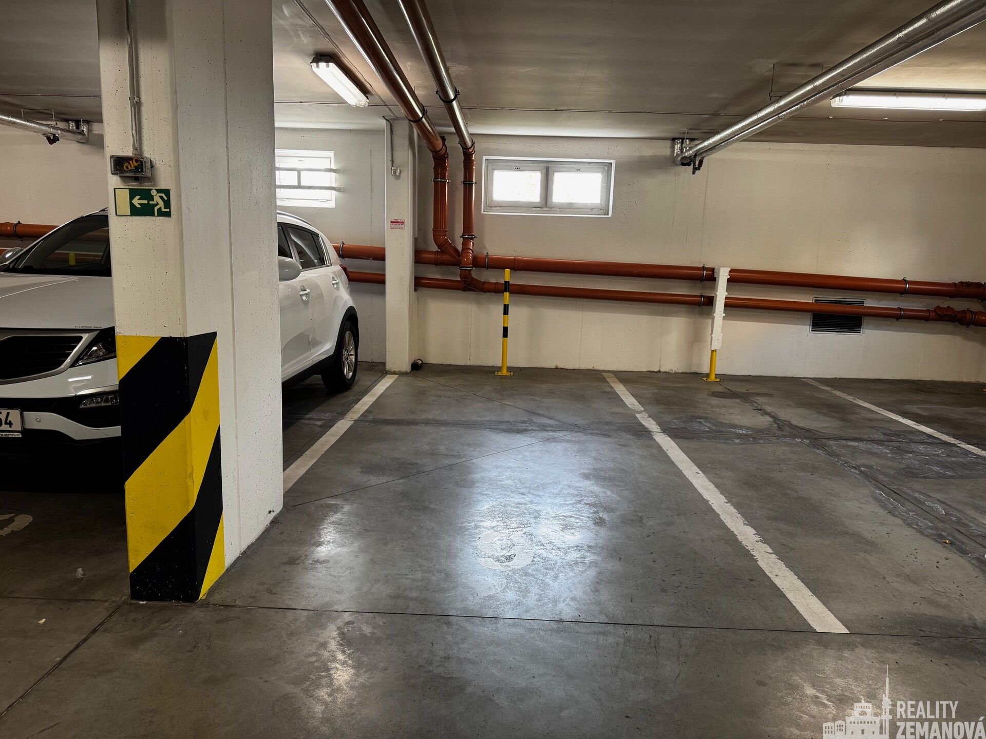 V případě zájmu je možné si k bytu pronajmout garážové stání č. 4, které se nachází v prvním podzemním podlaží přímo v domě, u stejného výtahu jako byt. Cena pronájmu činí 1 500 Kč měsíčně.