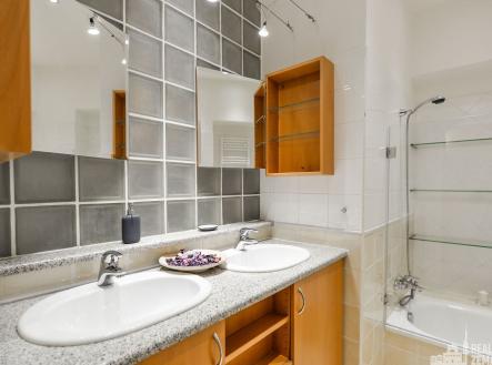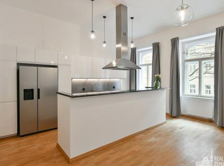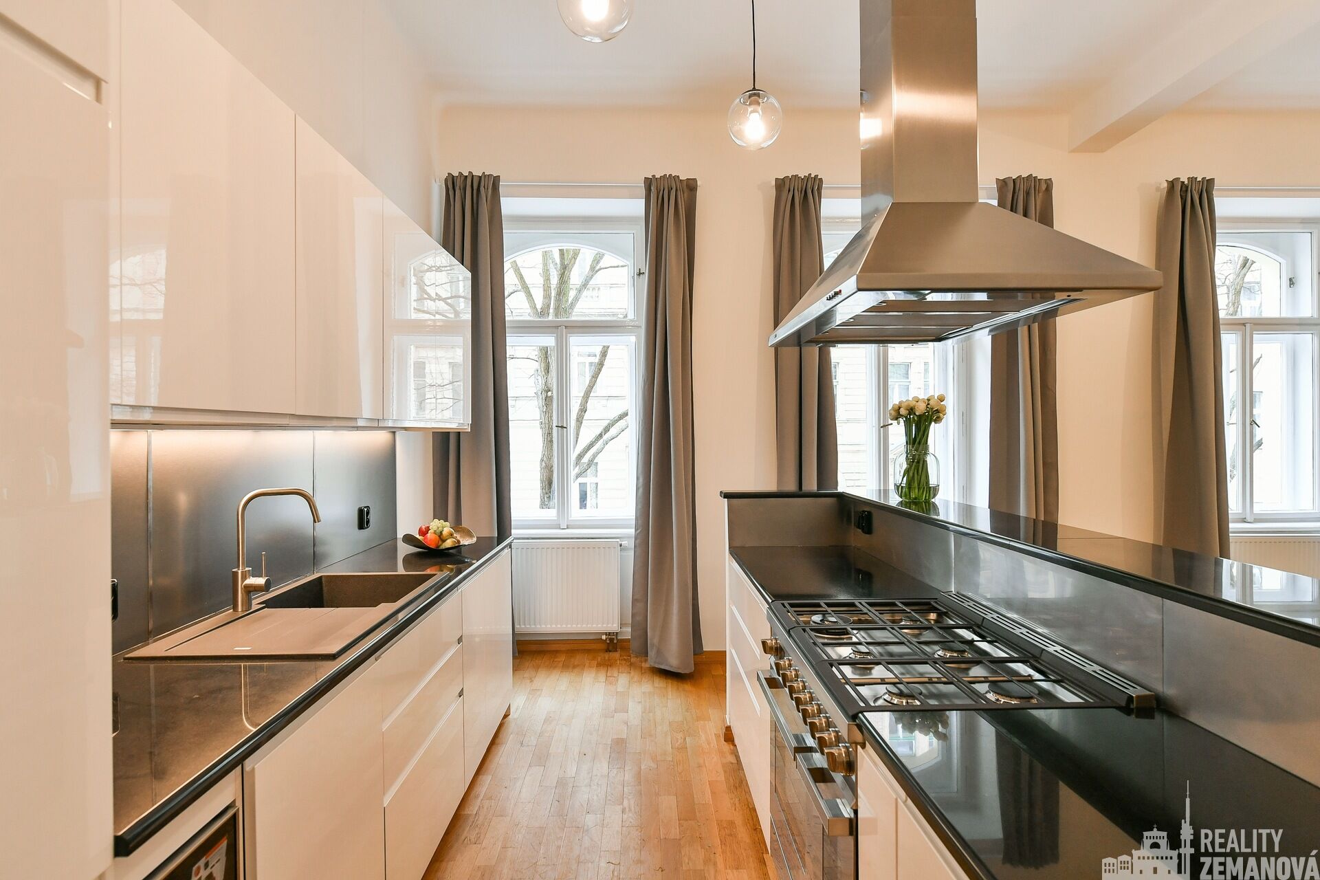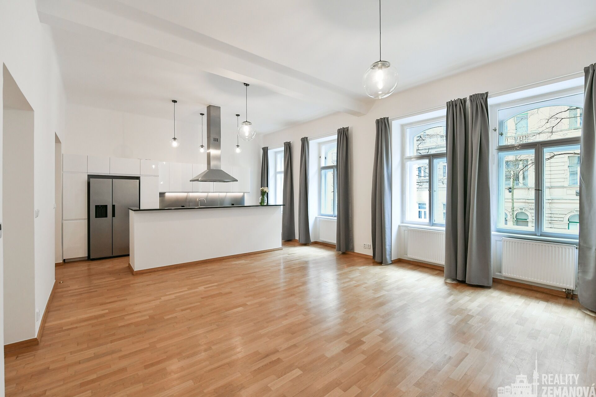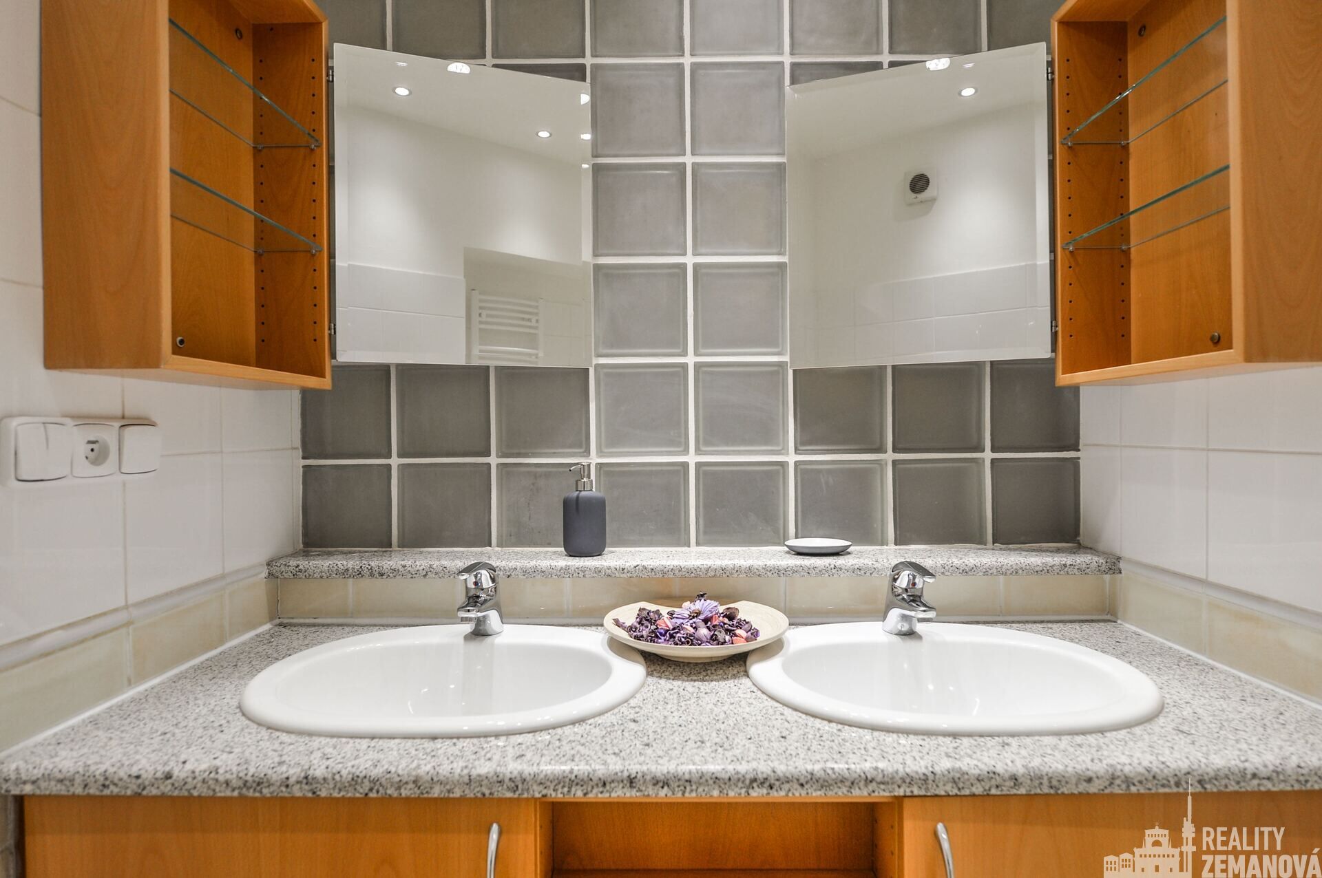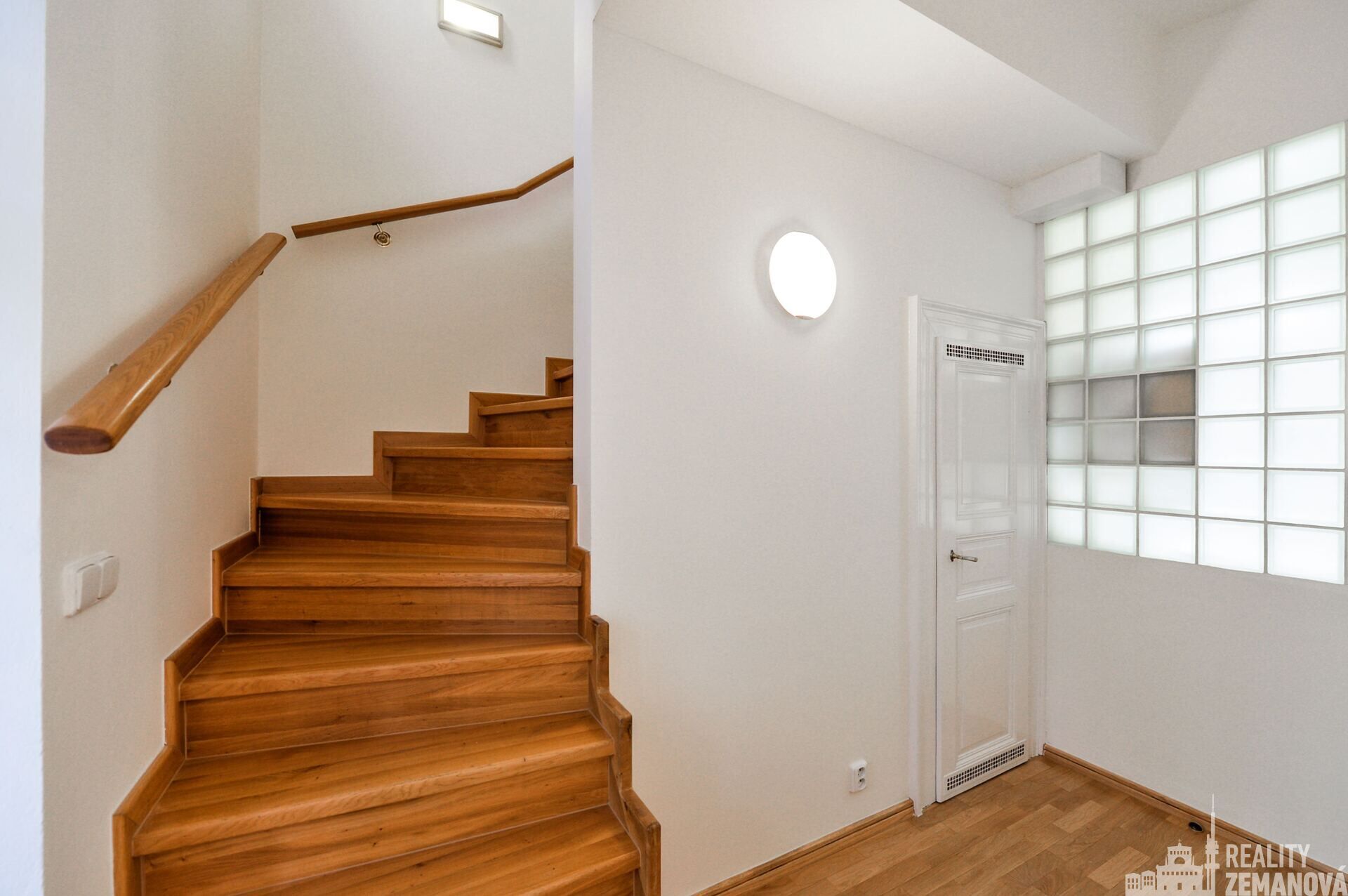K pronájmu reprezentativní byt/mezonet o celkové výměře 118 m2, mezonet ve zvýšeném 1. NP a 2. NP. K bytu může náležet 1 garážové stání v domě. Dispozičně: 3+kk, tj. dvě ložnice, dvě koupelny, obývák s kuchyní, balkon.