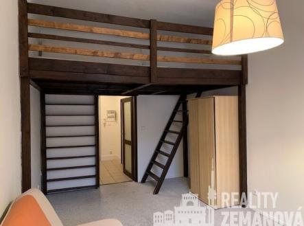 Byt je po částečné rekonstrukci. Sestává se z malé kuchyně s kuch. linkou vybavenou všemi potřebnými spotřebiči (digestoř, elektrický sporák, mikrovlnná trouba), dále z pokoje s vestavěným patrem/lůžkem a s koupelnou s WC (vana, automatická pračka) a s předsíní.