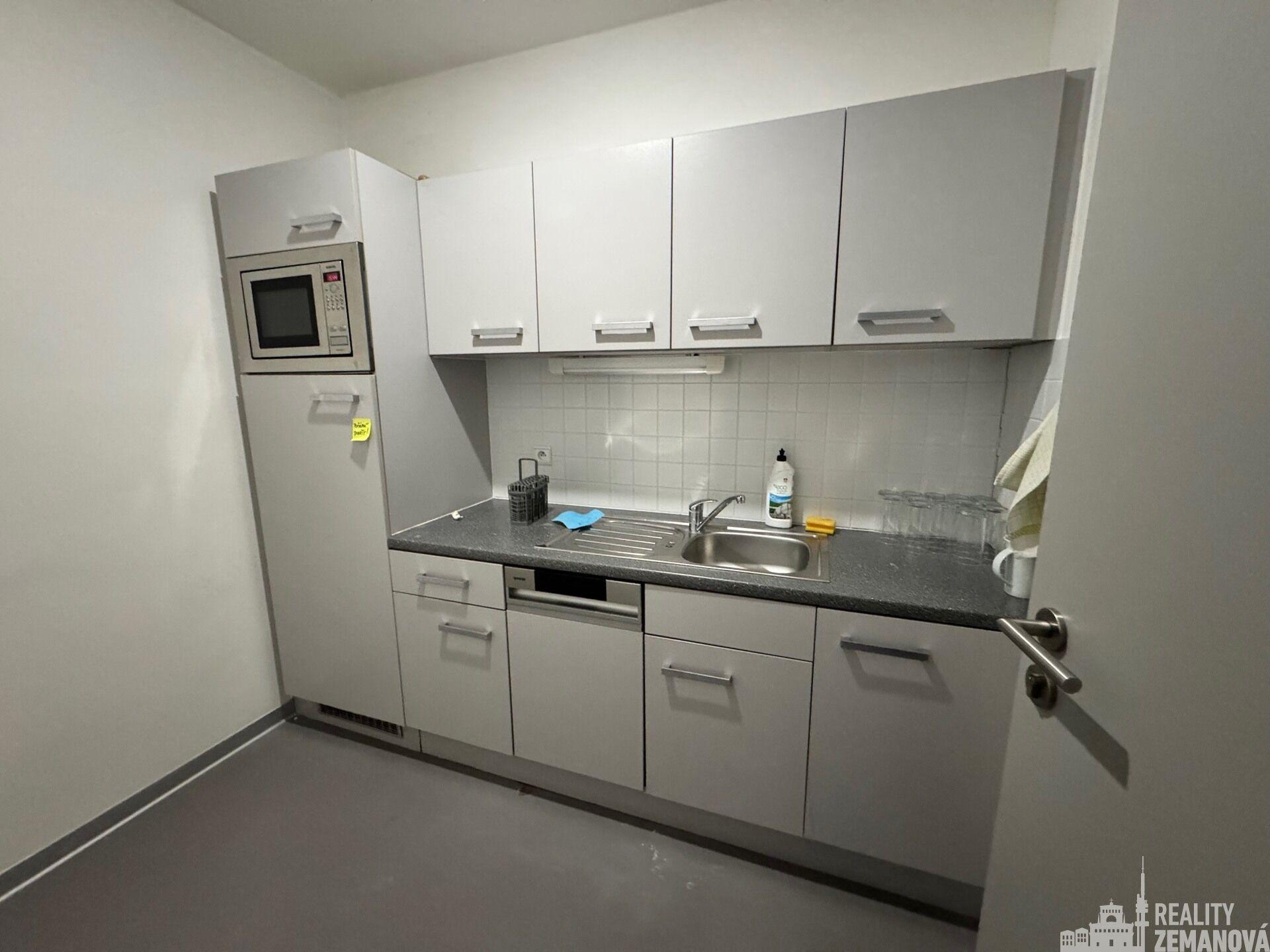 kancelářské prostory, několik vlastních WC, kuchyňka, technické zázemí (kopírky, tiskárny apod.), kompletní datové a internetové rozvody